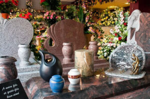 Funérailles Romain à Roux vous propose des monuments funéraires en granit et des compositions de fleurs.